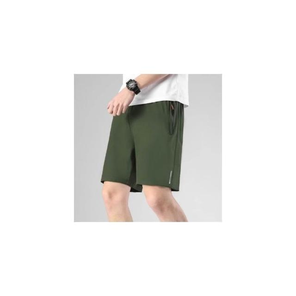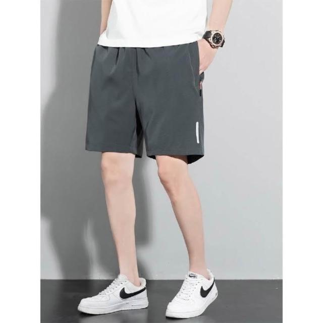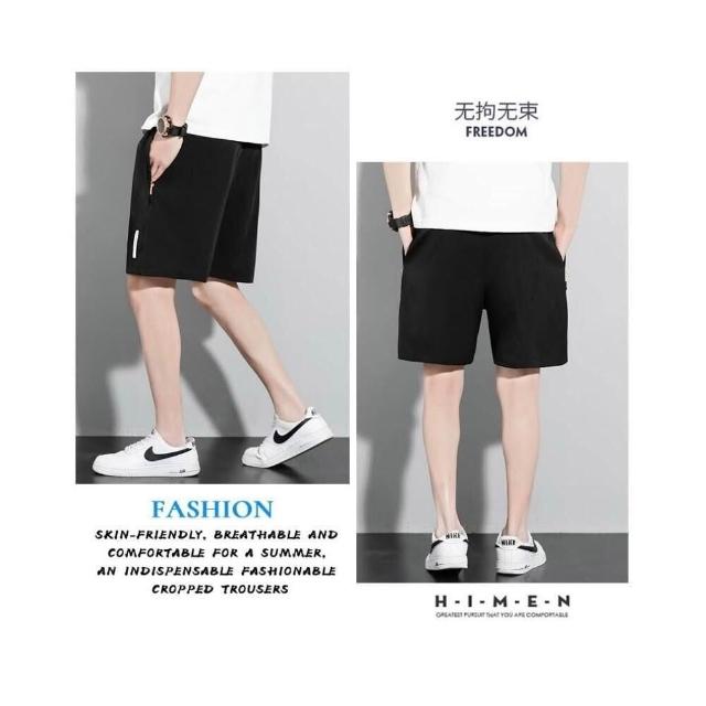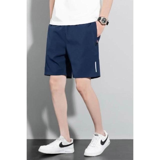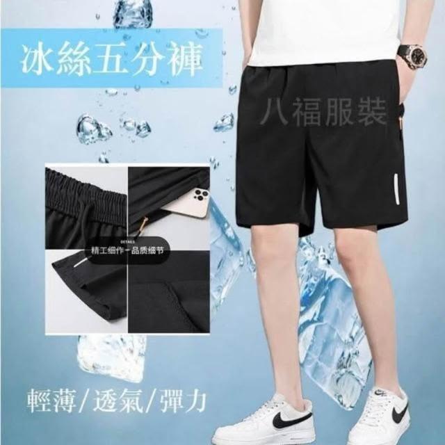 運動短褲男夏季新款冰絲涼感速乾褲透氣高彈力五分褲簡約潮流休閒褲輕薄時尚百搭沙灘褲鬆緊帶海灘褲吸濕排汗男裝直筒側拉鏈下著