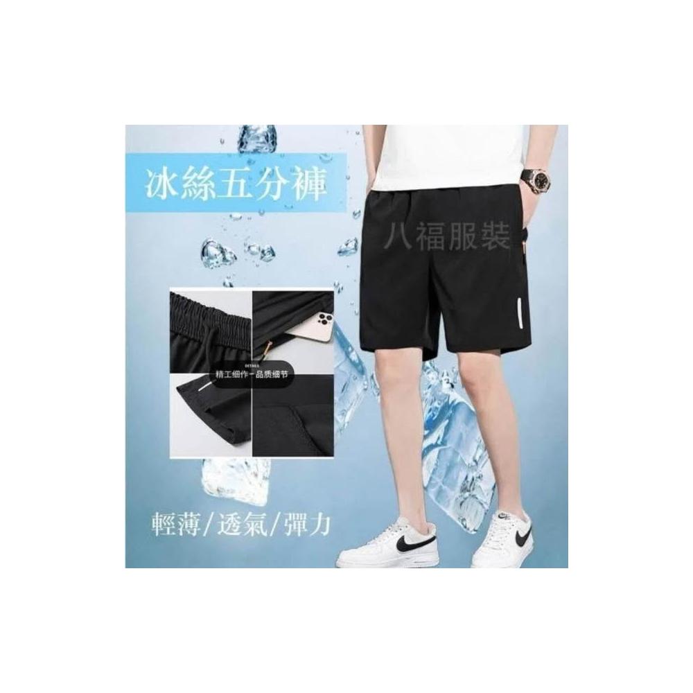 運動短褲男夏季新款冰絲涼感速乾褲透氣高彈力五分褲簡約潮流休閒褲輕薄時尚百搭沙灘褲鬆緊帶海灘褲吸濕排汗男裝直筒側拉鏈下著