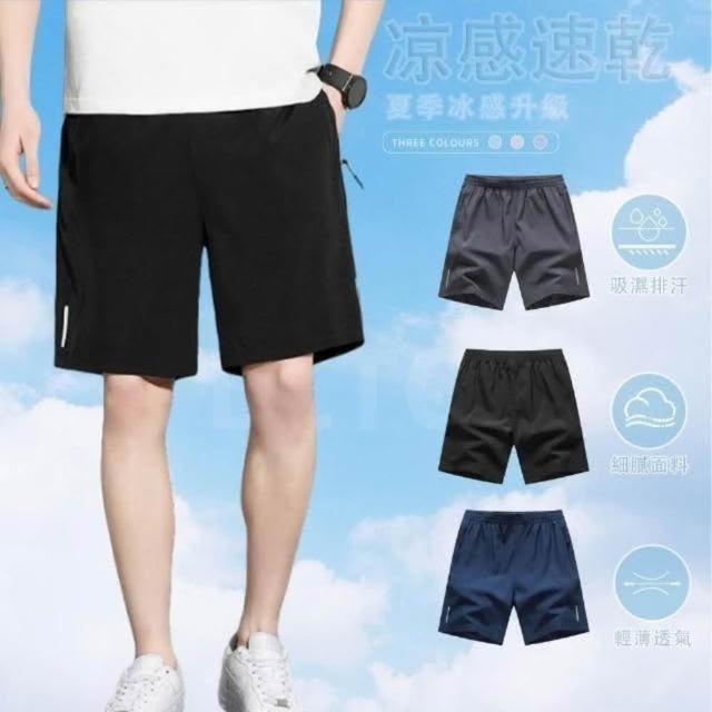 運動短褲男夏季速乾吸濕排汗短褲薄款大尺碼馬拉松跑步五分褲夏天直筒涼感寬褲冰絲彈力籃球褲男生白色鬆緊涼爽休閒闊腿褲運動褲