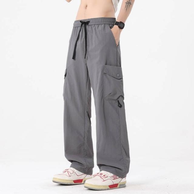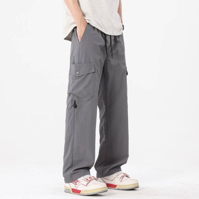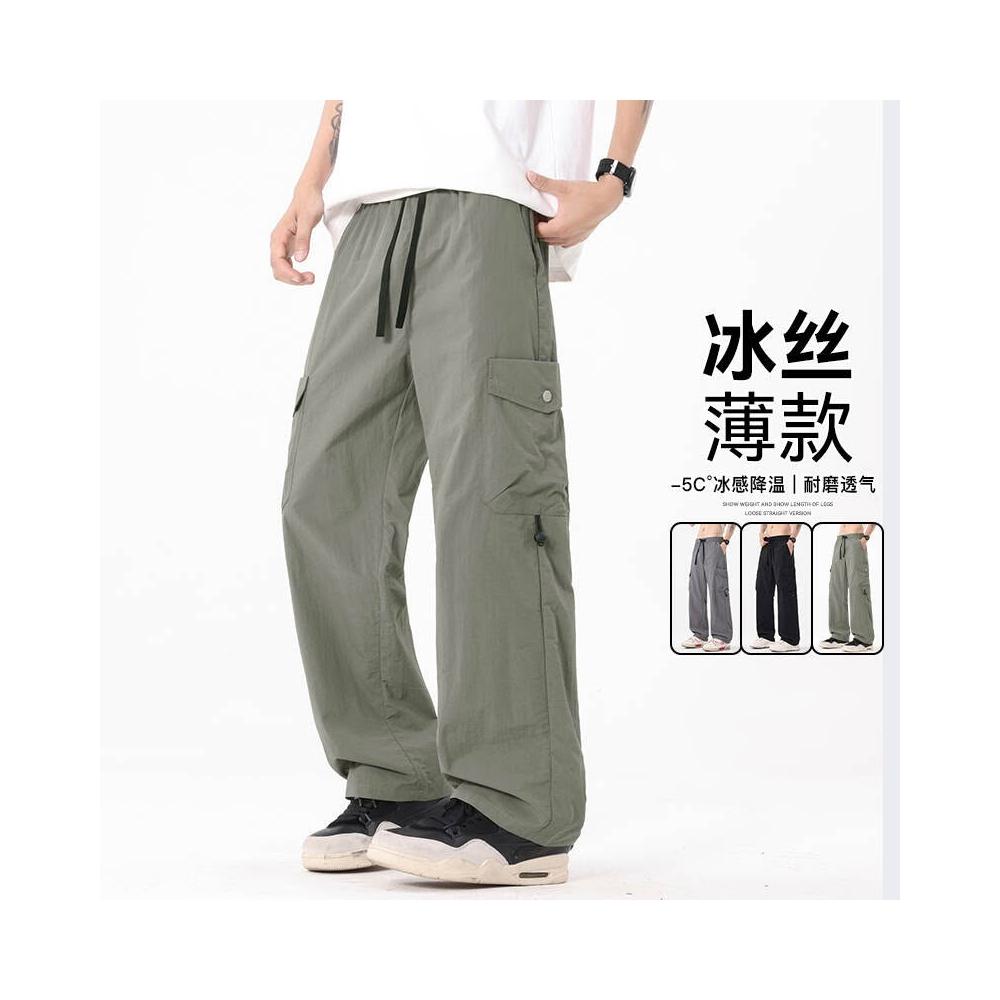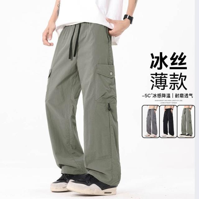 運動褲男大尺碼直筒涼感冰絲褲輕薄透氣吸濕排汗休閒褲夏季彈力垂感舒適速乾休閒褲慢跑籃球登山闊腿寬褲工作防曬寬鬆耐磨運動長褲
