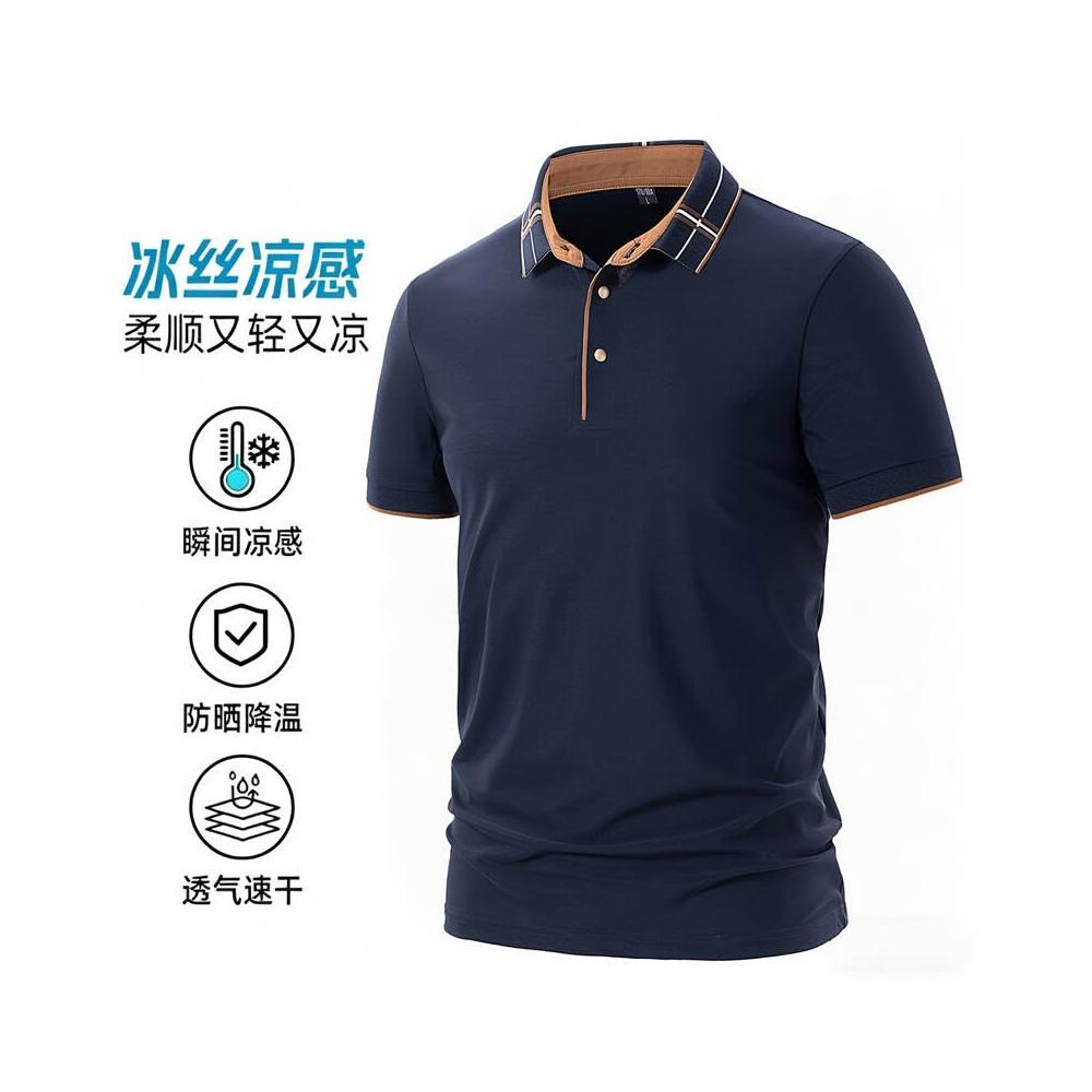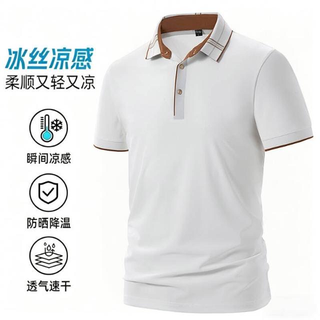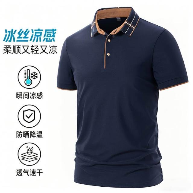 POLO 衫男夏季大尺碼輕薄冰絲涼感短袖翻領修身 T 恤彈力舒適透氣吸濕速幹排汗耐磨短袖寬鬆耐磨遮肉顯瘦跑步上衣休閒工作健身短版運動上衣