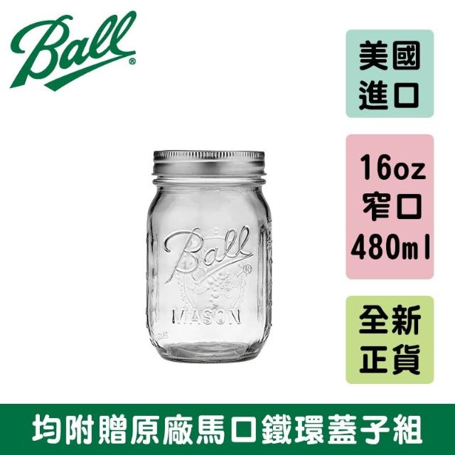 Ball 梅森Ball Mason Jar 16oz/480ml 窄口刻度款 梅森罐/玻璃瓶/梅森瓶/儲物罐/廚房用品/密封罐/收納