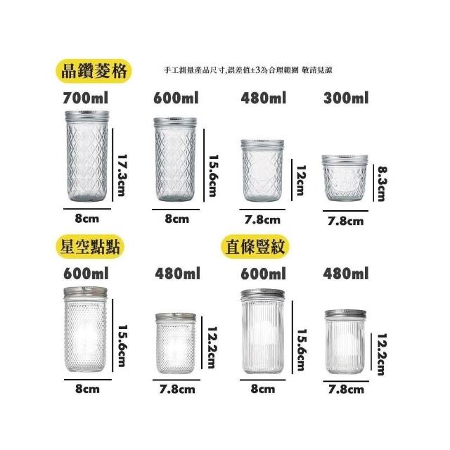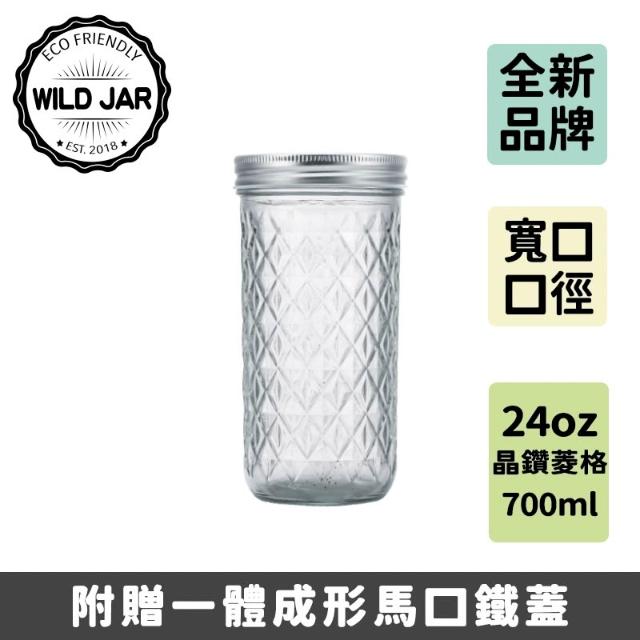 Wildjar Mason 梅森罐 24oz/700ml 寬口晶鑽菱格 玻璃瓶/梅森瓶/儲物罐/廚房用品/密封罐/收納