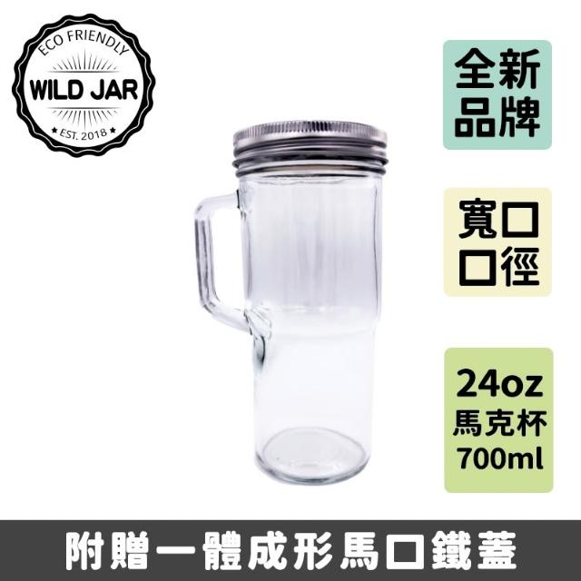 Wildjar Mason 梅森罐 24oz/700ml 寬口透明冰霸馬克杯 玻璃瓶/梅森瓶/握把杯/密封罐/飲料杯