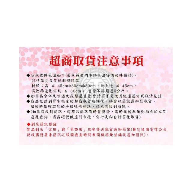 - 依照客戶指定配送之商品(約配商品)接獲訂單逾30日您未通知出貨及受領商品,為了保障您的權益,商店得取消訂單,請客戶重新下單購買。