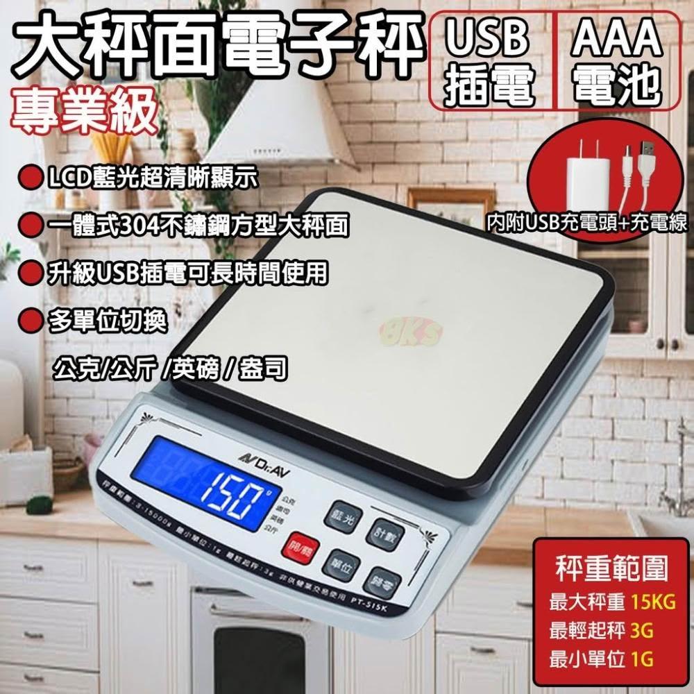 專業級大秤面電子秤 最大秤重15KG 插電/電池(另售) 304不鏽鋼大秤面 藍光大螢幕顯示 附電源供應器