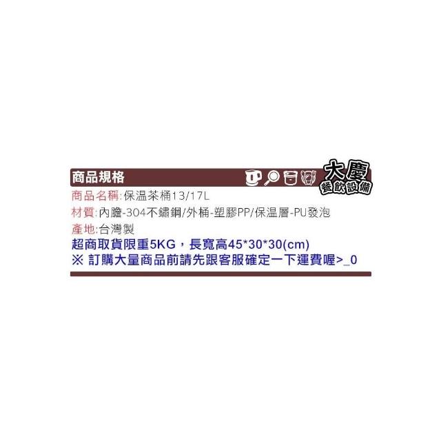 台灣製 保溫茶桶 (13 17L) 紅茶桶 咖啡桶 飲料桶 早餐店 保溫 保冷 大慶㍿