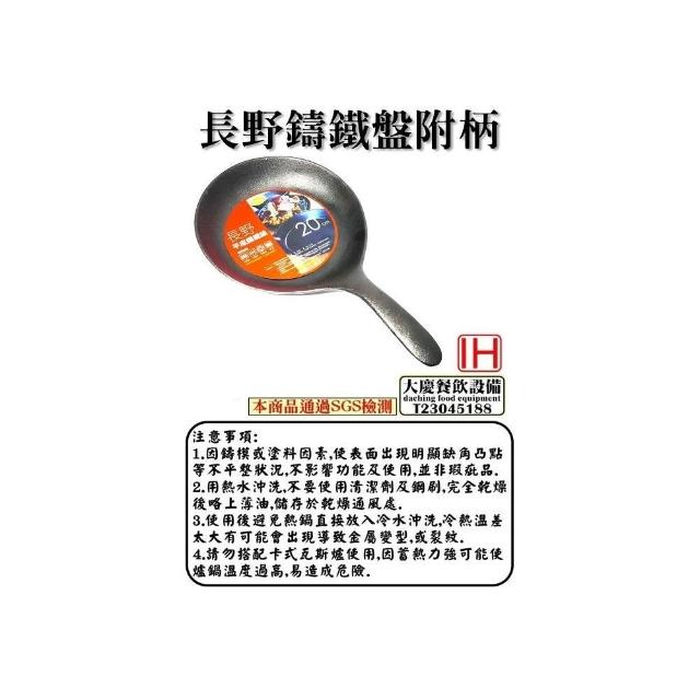 長野鑄鐵盤 20cm(SGS認可) 鑄鐵鍋 鑄鐵平底鍋