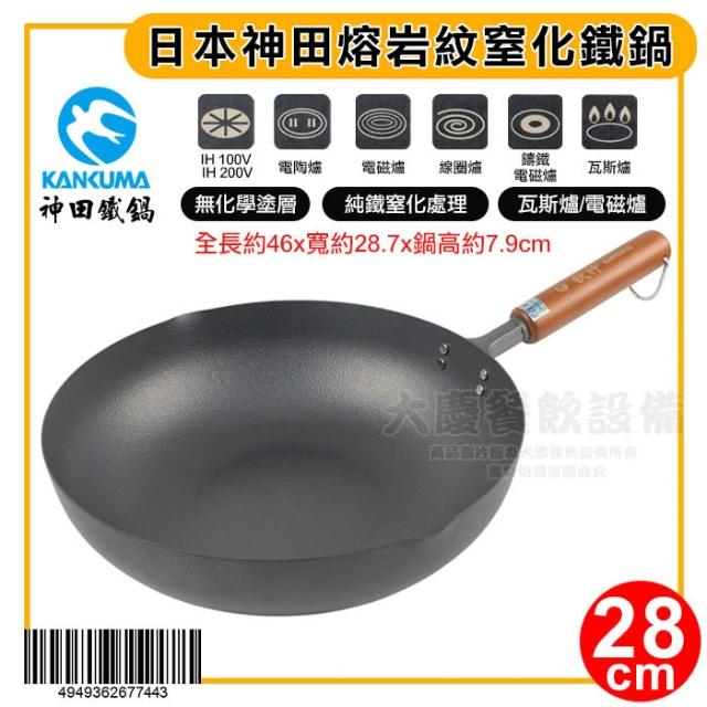 燕三条 日本神田 熔岩紋製化鐵鍋 平煎鍋 炒鍋 鐵鍋 大慶㍿