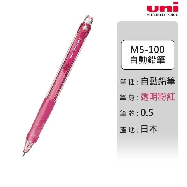 UNIuni 日本三菱 M5-100 自動鉛筆 彩色透明桿 帶橡皮擦 0.5mm