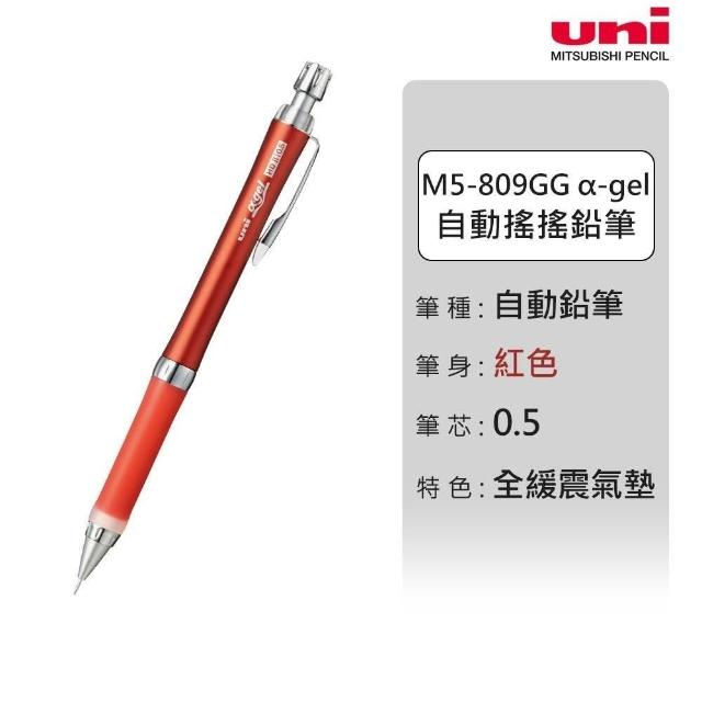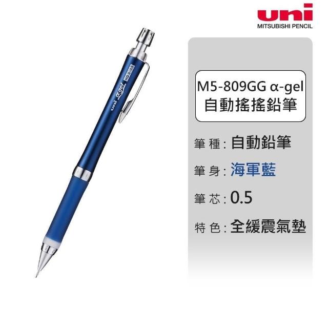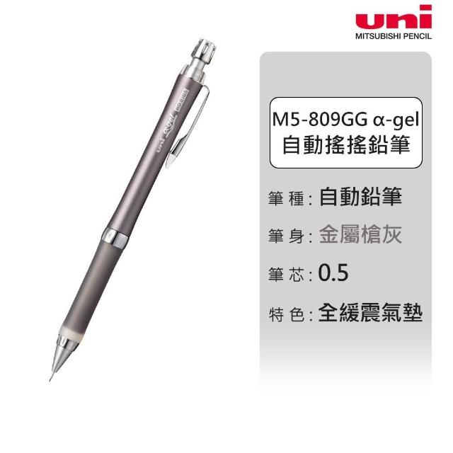 UNIuni 日本三菱 M5-809GG α-gel 全緩震氣墊搖搖出筆芯自動鉛筆(0.5mm) 細桿 防疲勞 久握舒適
