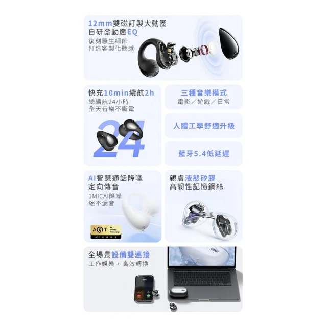 SoundPeatsCC pro 珍珠耳夾式藍牙耳機公司貨 舒適輕盈 防水防塵 藍牙5.4 Ai降噪