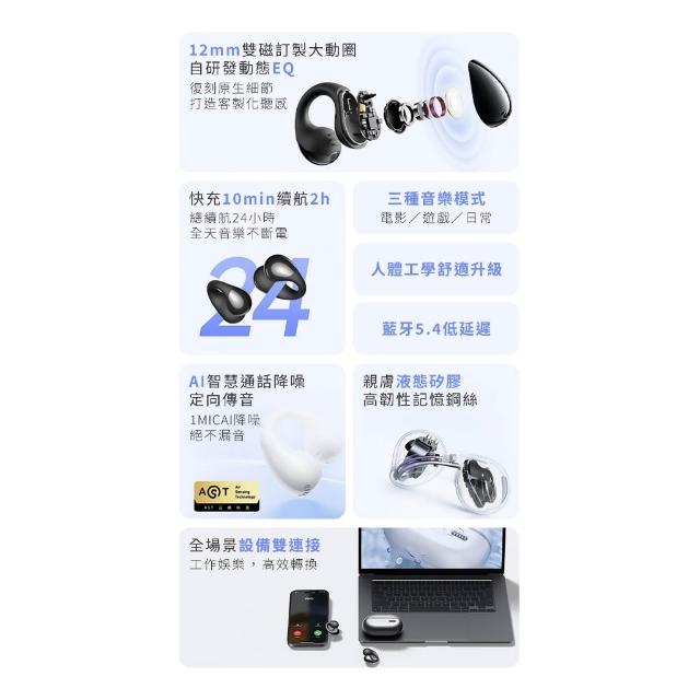 SoundPeatsCC pro 珍珠耳夾式藍牙耳機公司貨 舒適輕盈 防水防塵 藍牙5.4 Ai降噪
