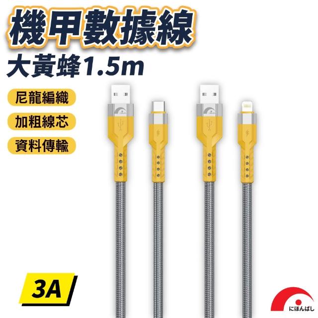 JPB 大黃蜂機甲充電線/數據線 1.5m Lightning Type-c 傳輸線 PD快充