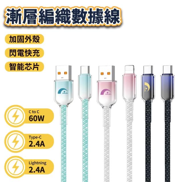 JPB 漸層編織充電線/數據線 60W 1m Lightning / Type-c 傳輸線 PD快充