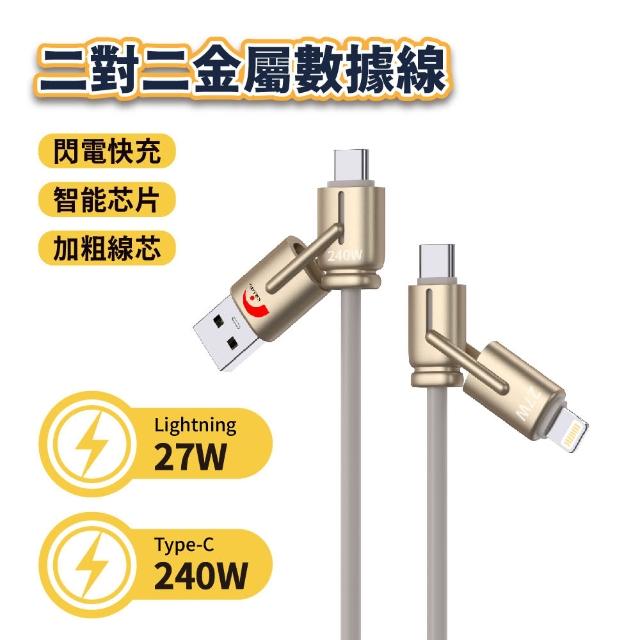 二對二金屬數據線 Type-C Lightning 充電線 數據線 快充線 適用蘋果/安卓