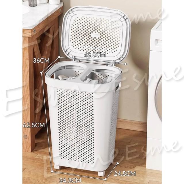 洗衣籃 髒衣籃 分隔洗衣籃 白色灰色 帶輪洗衣籃