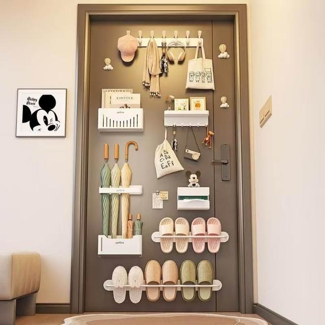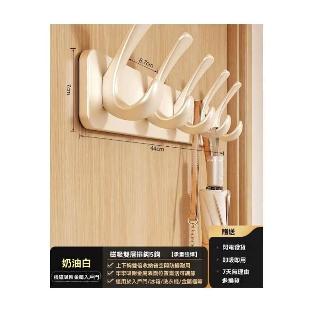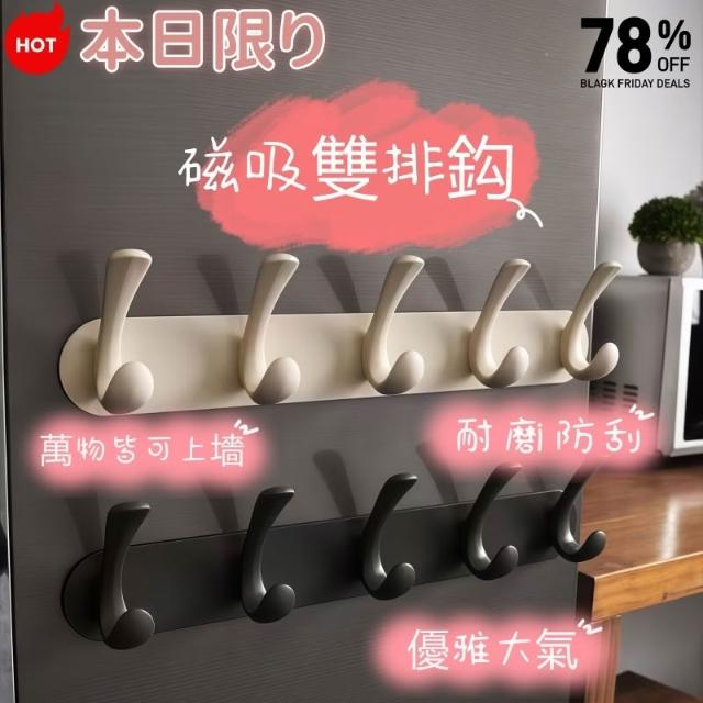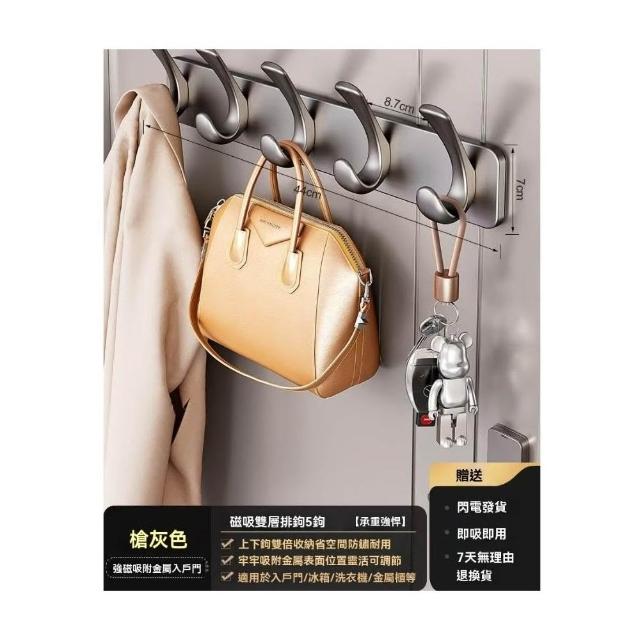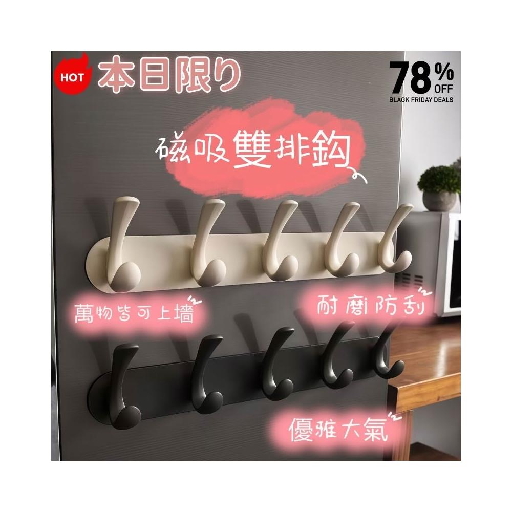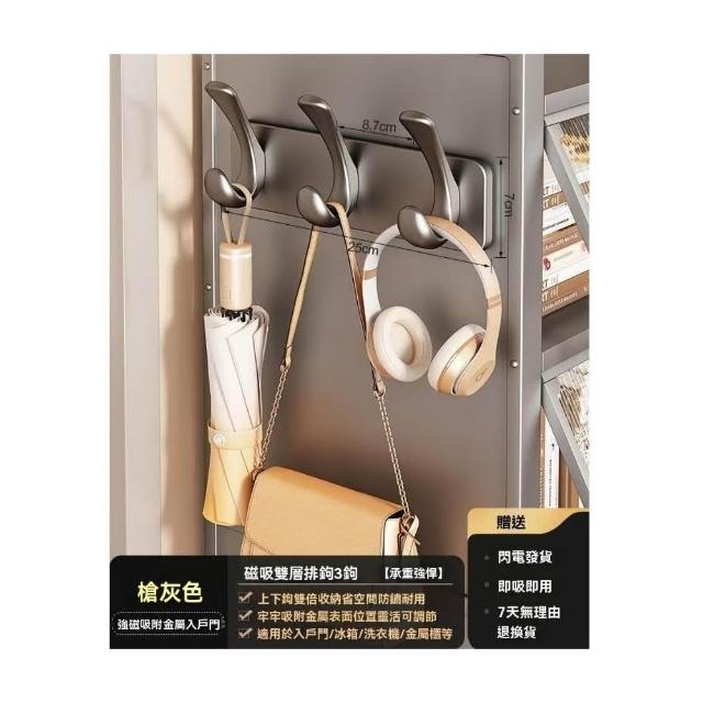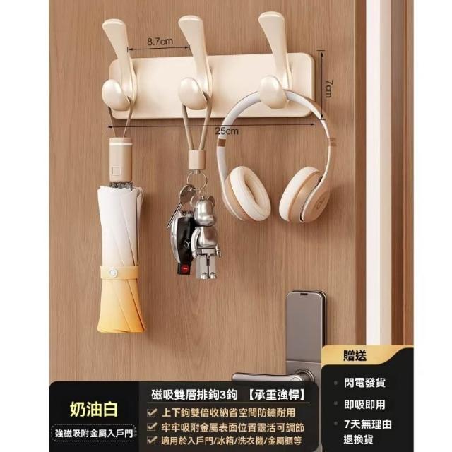 磁吸雙層挂鈎 雙層磁吸排鈎 吸鐵掛勾 磁性掛勾 磁鐵排勾 收納掛架 免釘掛鈎收納 玄關門後冰箱鑰匙包衣帽排鈎 三鈎 五鈎