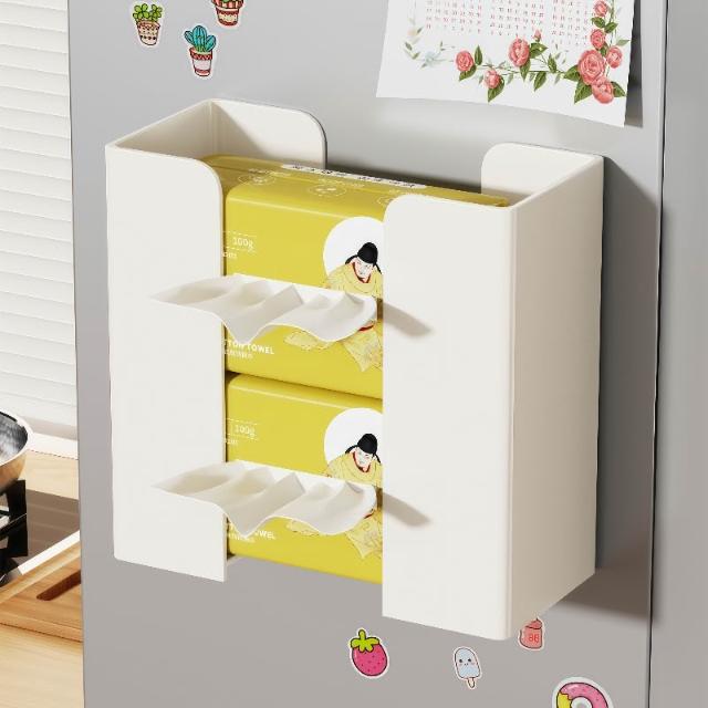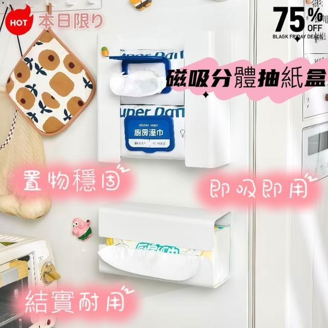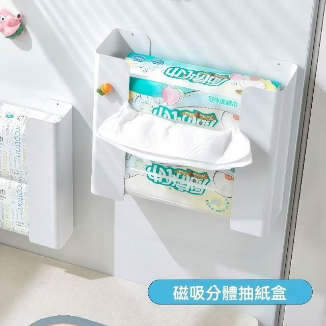 分離式磁吸分離式紙巾盒 抽紙收納 磁吸收納 置物架 冰箱置物架 濕巾收納盒 磁鐵收納 厨房玄關門後 冰箱洗衣機 可調整
