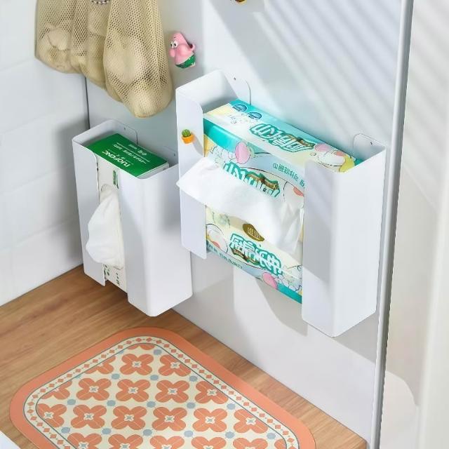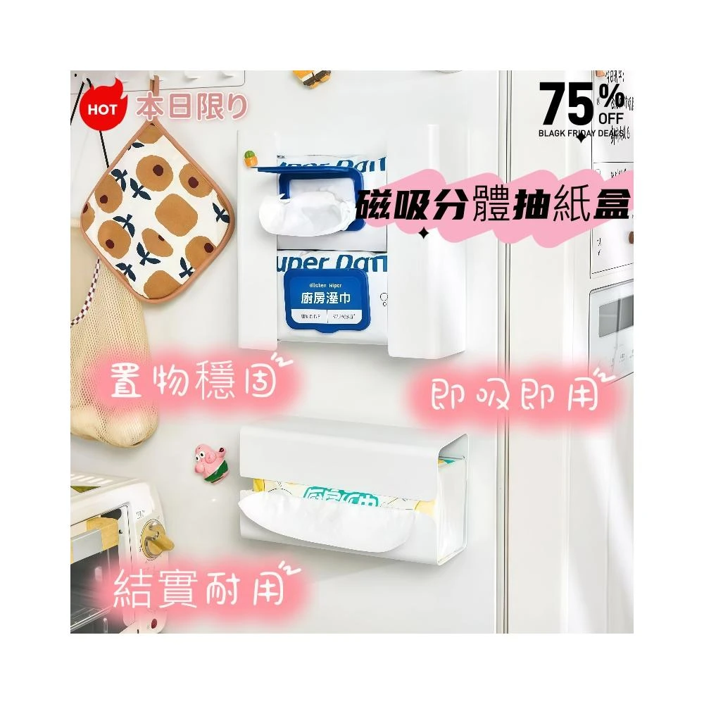 分離式磁吸分離式紙巾盒 抽紙收納 磁吸收納 置物架 冰箱置物架 濕巾收納盒 磁鐵收納 厨房玄關門後 冰箱洗衣機 可調整