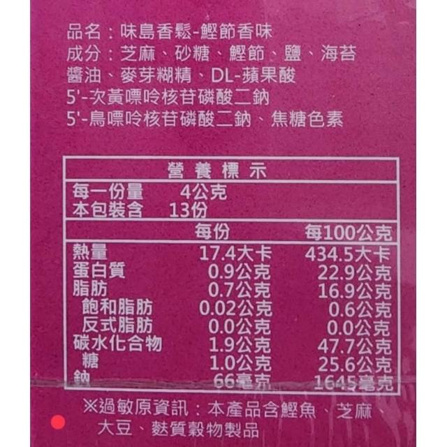 味島香鬆52g WEI TAO 瀨戶風味 鰹節香味 海苔香味 素 配飯 配麵