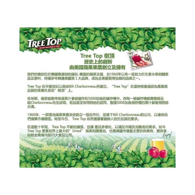 TREE TOP 樹頂 100%純蘋果汁 柳橙汁 石榴莓汁 200ml/6入/24入 果汁 100% 現貨