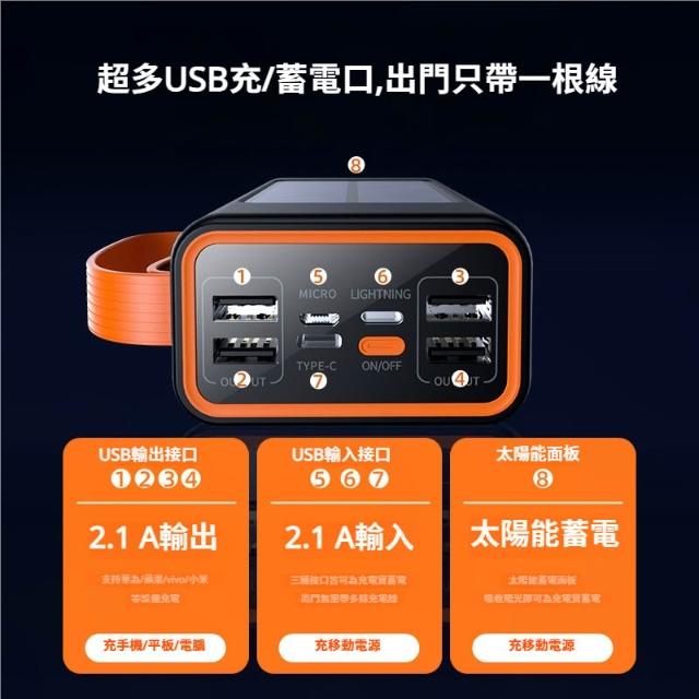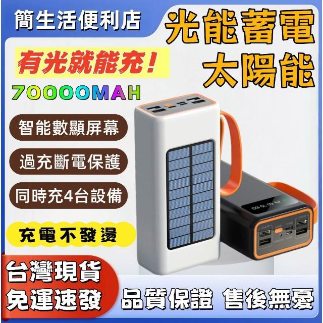 太陽能行動電源 7萬毫安大容量 快充行動電源 光能蓄電 同時充4台設備 過熱斷電保護 露營戶外便攜