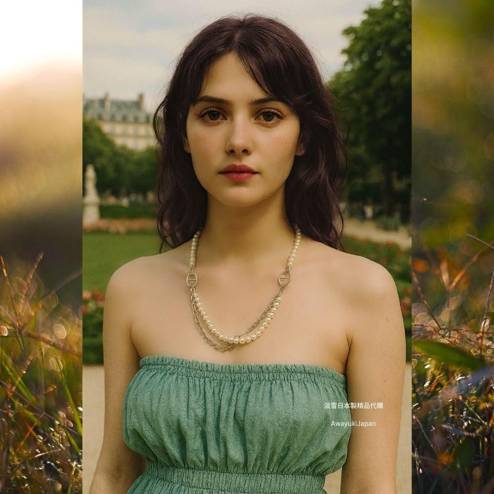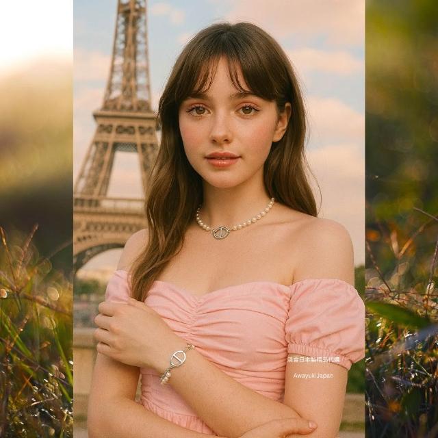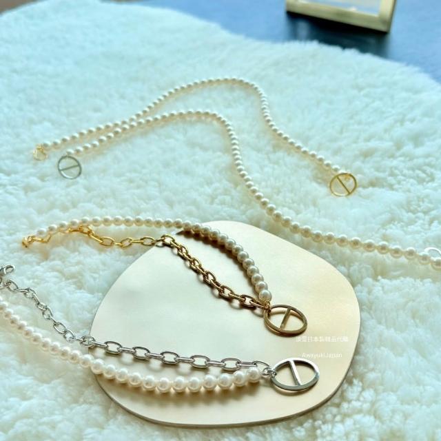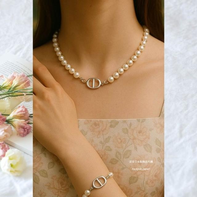 Awayuki日本製 豬鼻珍珠鏈條手鏈+項鍊(銀色) 豬鼻 人造珍珠 珍珠 珍珠手鏈 珍珠項鍊 個性手鍊 個性項鍊