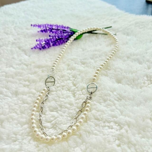Awayuki日本製 豬鼻珍珠鏈條手鏈+項鍊(銀色) 豬鼻 人造珍珠 珍珠 珍珠手鏈 珍珠項鍊 個性手鍊 個性項鍊