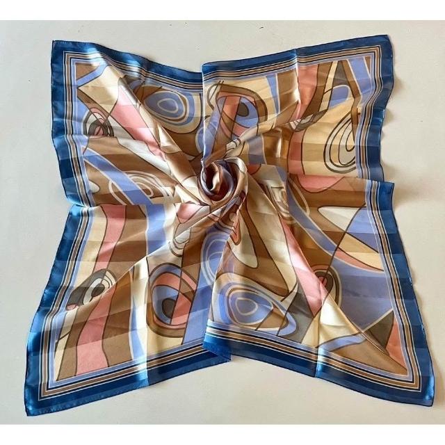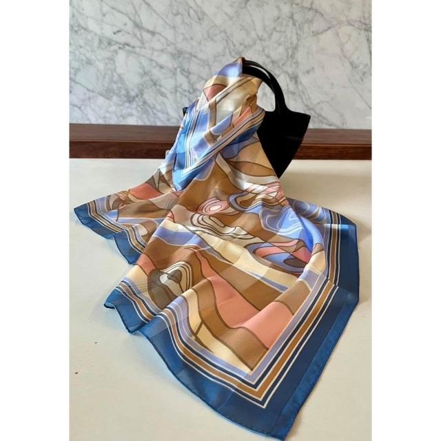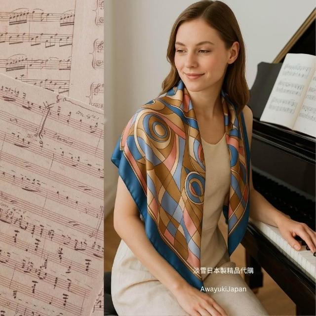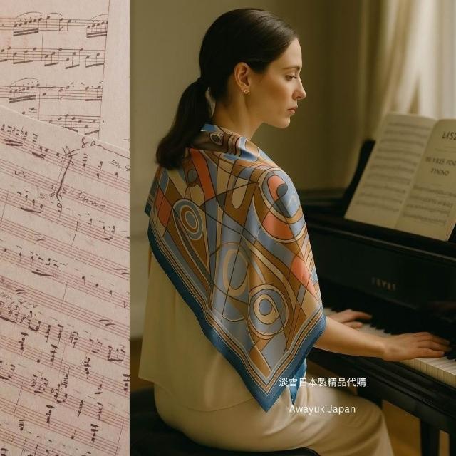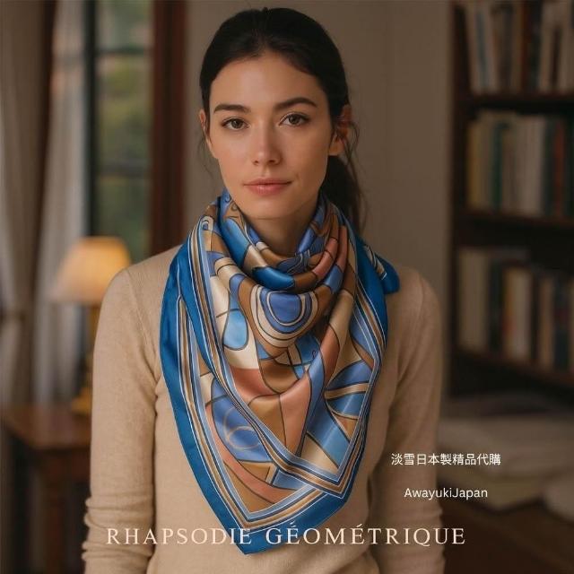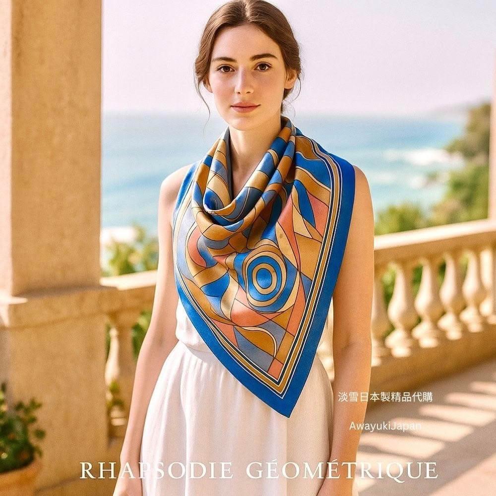 Awayuki日本製 絲巾_幾何狂想曲絲巾-藍色 (88x88cm) 純絲 日本絲巾 大方巾 9090 披肩 冷氣房 日夜溫差