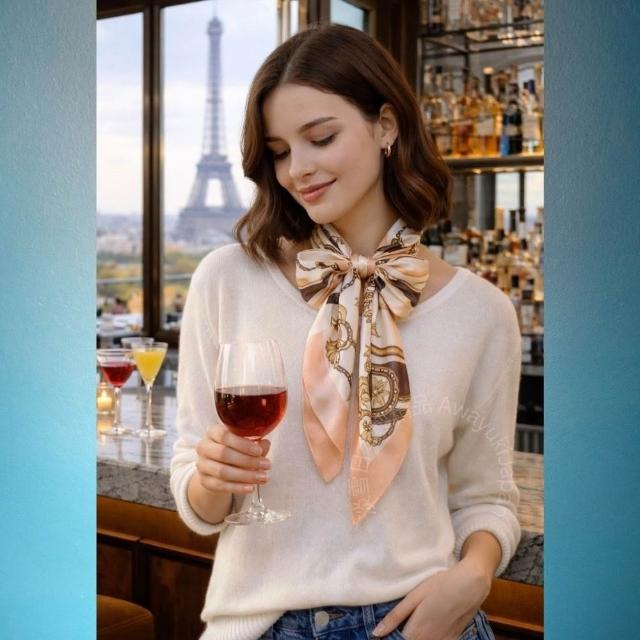 Awayuki日本製 絲巾_維斯特洛 馬具圖騰絲巾-淡橘(90x90cm) 純絲 絲巾 90*90 日本絲巾 大方巾 9090