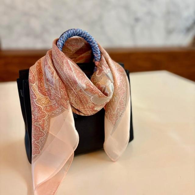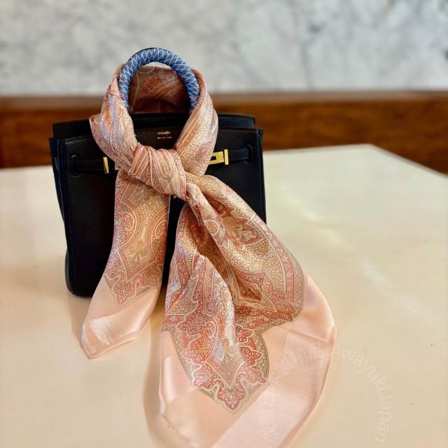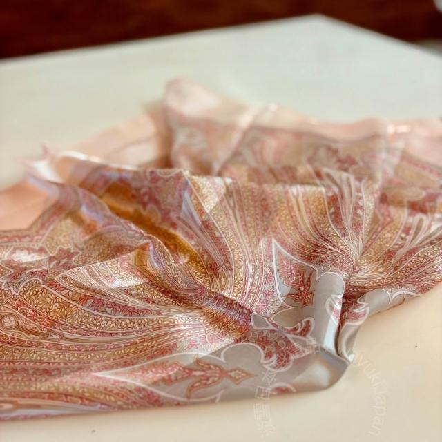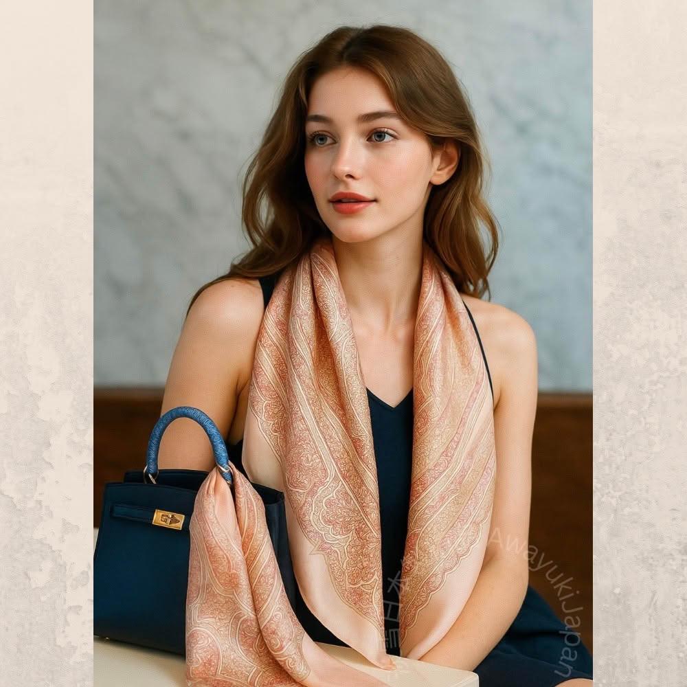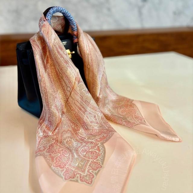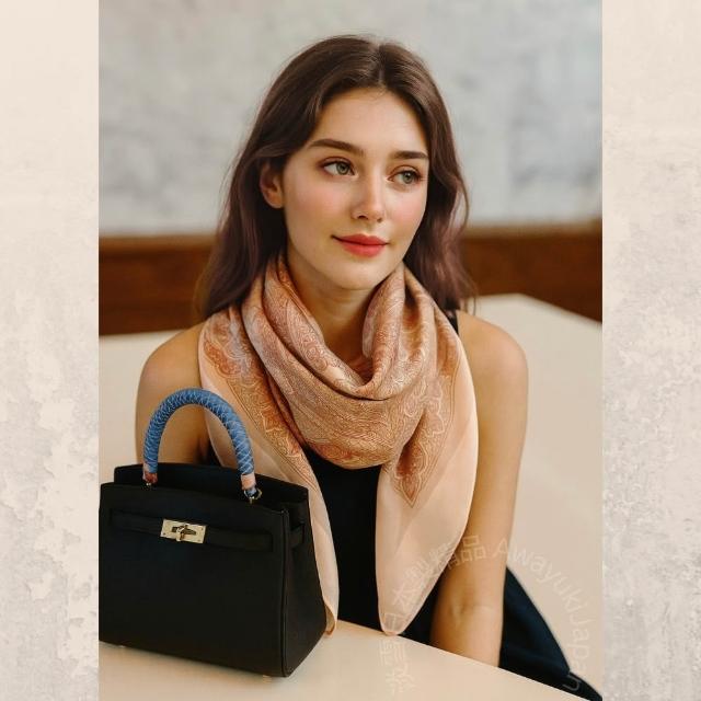 Awayuki日本製 絲巾_宮廷之光-曙光橘(80*80cm) 絲巾 方形絲巾 大方巾 日本絲巾 9090 披肩 冷氣房 日夜溫差