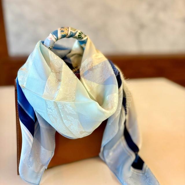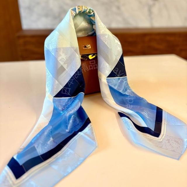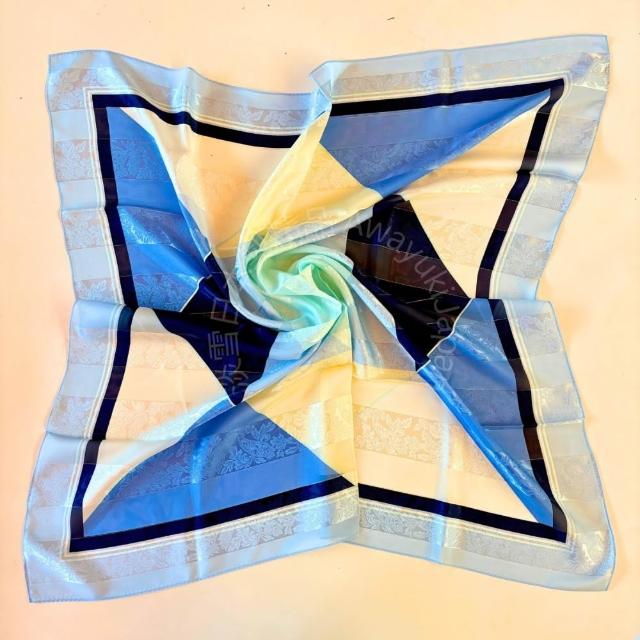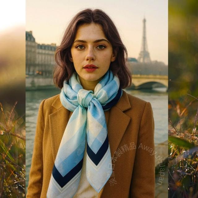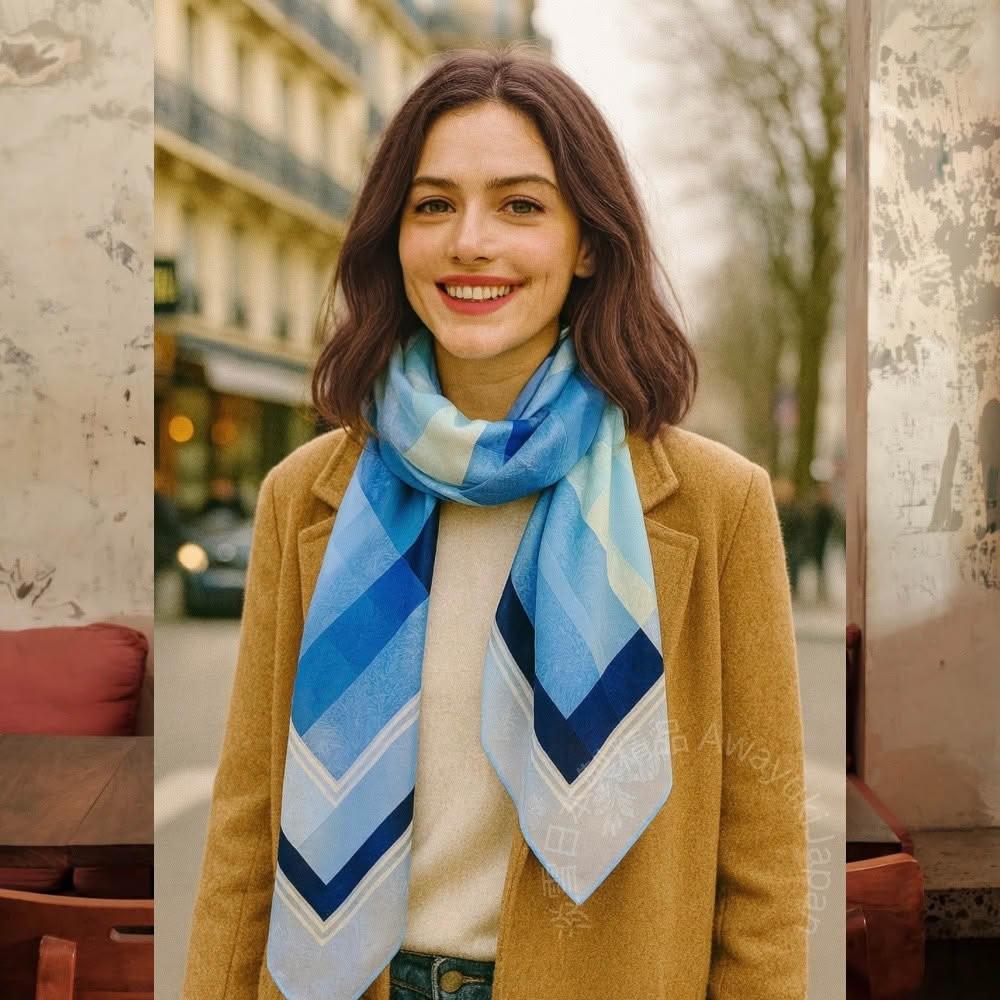 Awayuki日本製 絲巾_ 光影菱紋-海霧晨藍(88 × 88cm) 方形絲巾 大方巾 日本絲巾 9090 披肩 冷氣房 日夜溫差