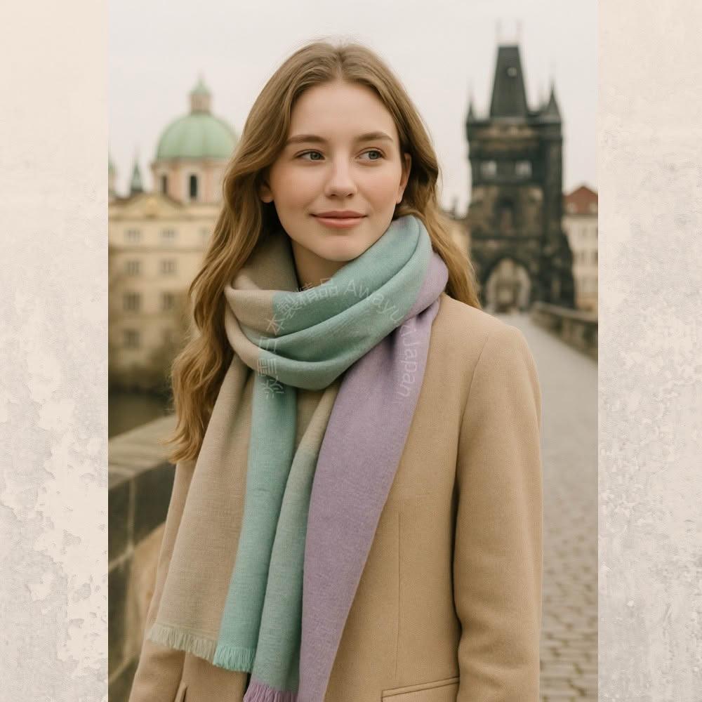 Awayuki日本製 圍巾_暖霧光影 披肩 長型圍巾-靜謐森暮(80x196cm) 羊毛圍巾 女生圍巾 日本圍巾 日本披肩 保暖圍巾