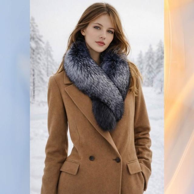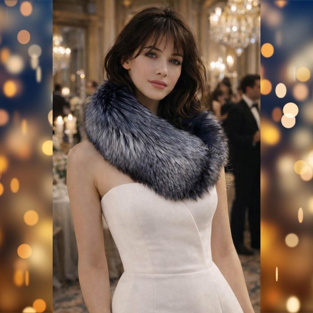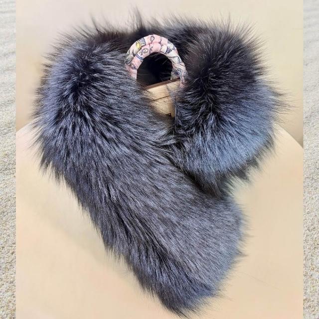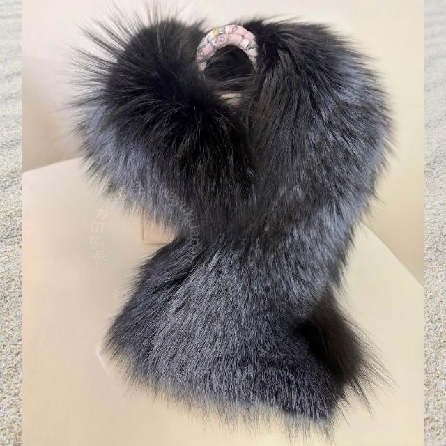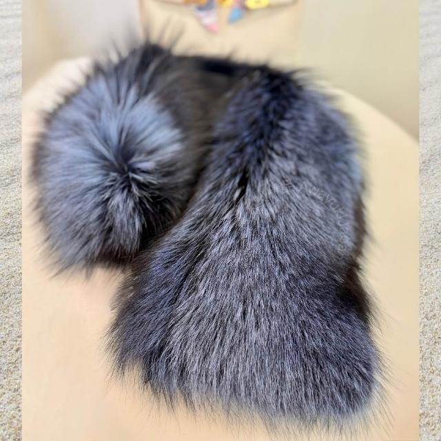 Awayuki日本製 狐狸毛圍巾_女王御臨|夜冕深藍 (92x18~28cm) 銀狐狸毛圍巾 貴婦圍巾女王圍巾 氣鎮全場 SAGA
