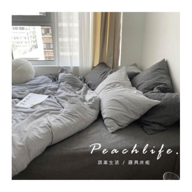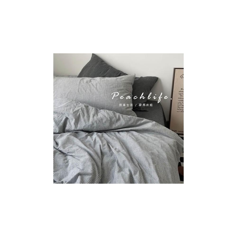 peachlife. 日式深灰條紋床包組 灰色床包 條紋床包 水洗棉皺摺質感床包 床包被套枕套 床包