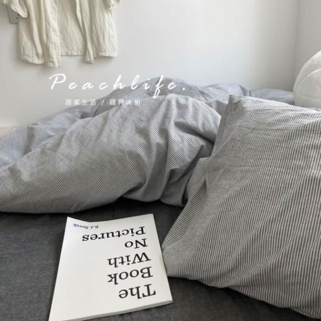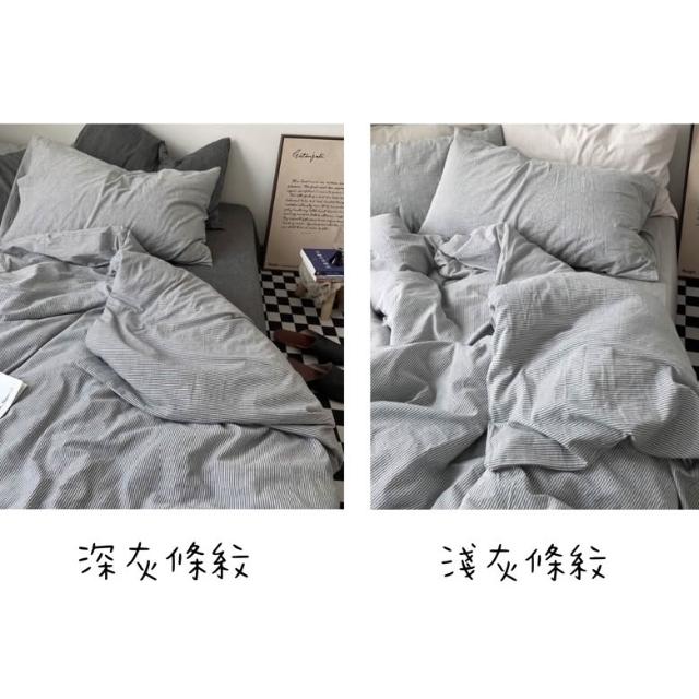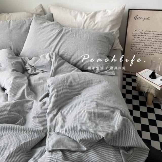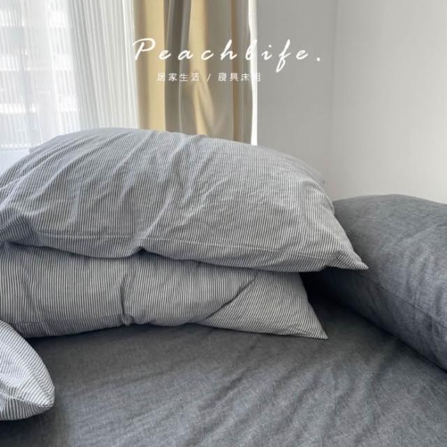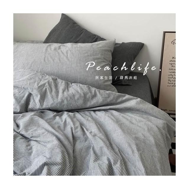 peachlife. 日式深灰條紋床包組 灰色床包 條紋床包 水洗棉皺摺質感床包 床包被套枕套 床包