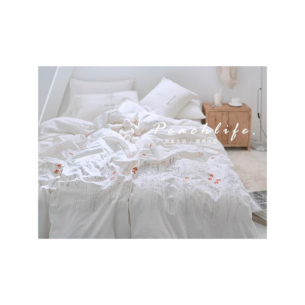 peachlife. 簡約純白純棉床包組 清新刺繡床組 純白床包組 床包 被套 枕套 刺繡床包