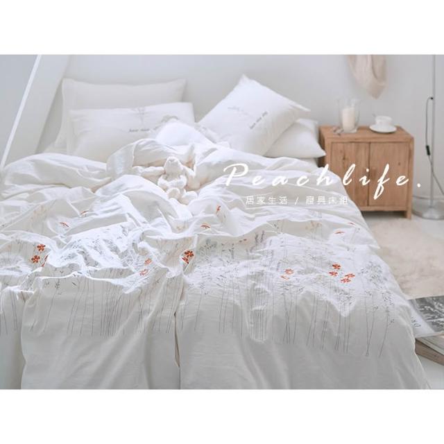 peachlife. 簡約純白純棉床包組 清新刺繡床組 純白床包組 床包 被套 枕套 刺繡床包