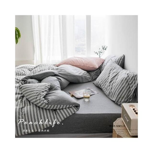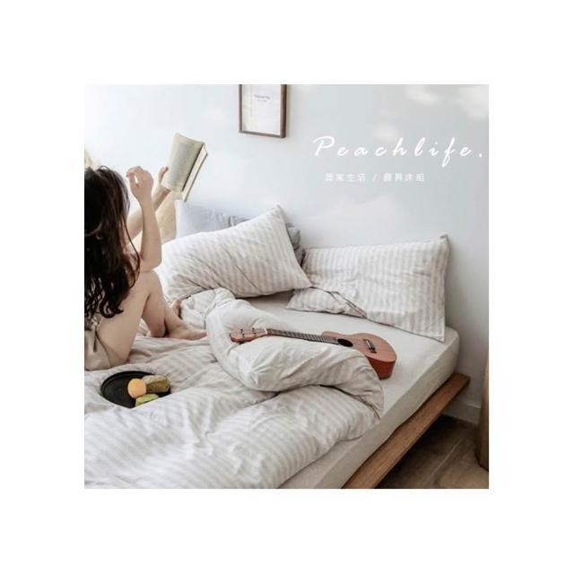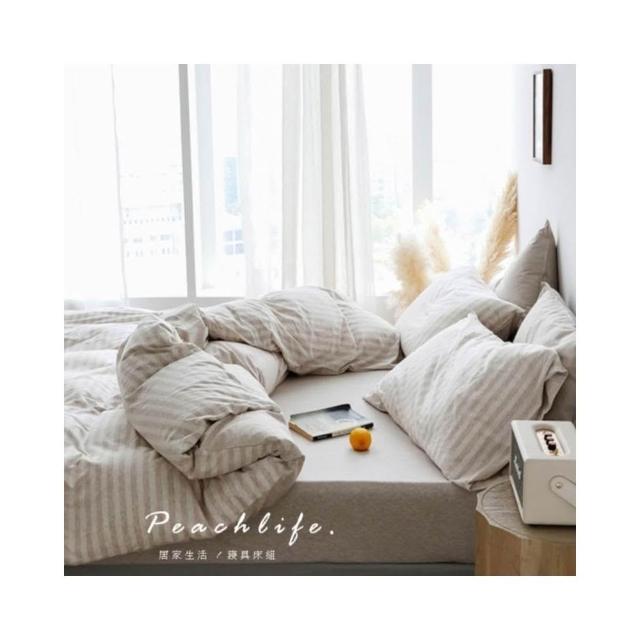 peachlife. 天竺棉條紋床包組 柔軟親膚 大地色系 米陀/淺咖/深咖/雅灰 被套 枕套 單人 雙人