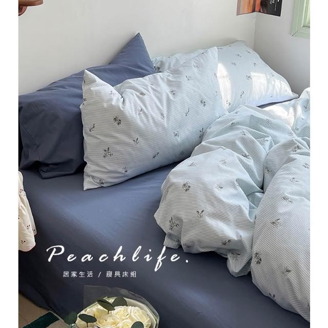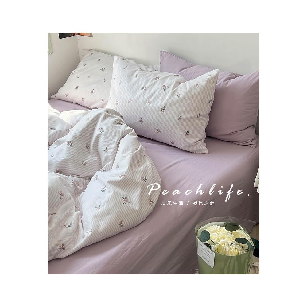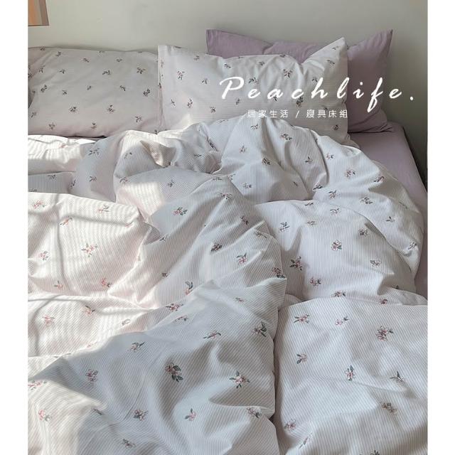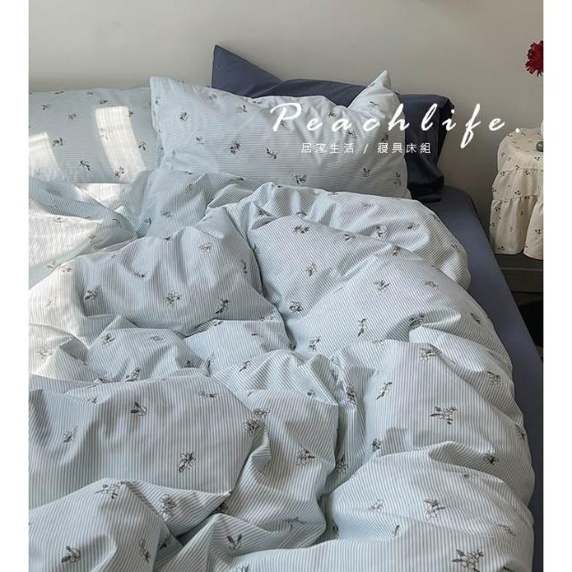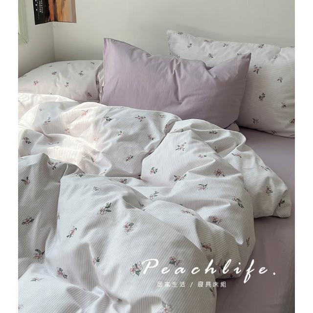 peachlife 100%純棉碎花床包組 小花床包 條紋 透氣舒適床包組 包含床包被套枕套 粉色/藍色