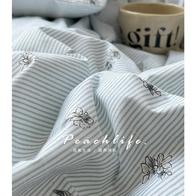 peachlife 100%純棉碎花床包組 小花床包 條紋 透氣舒適床包組 包含床包被套枕套 粉色/藍色