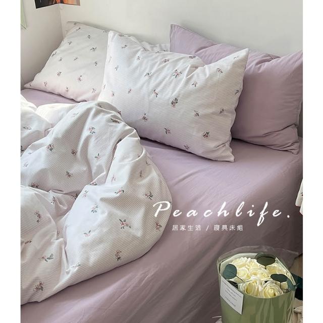 peachlife 100%純棉碎花床包組 小花床包 條紋 透氣舒適床包組 包含床包被套枕套 粉色/藍色