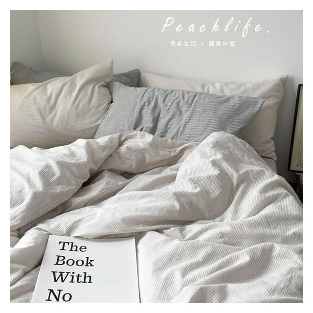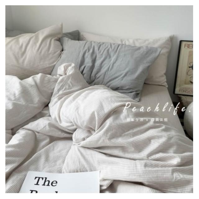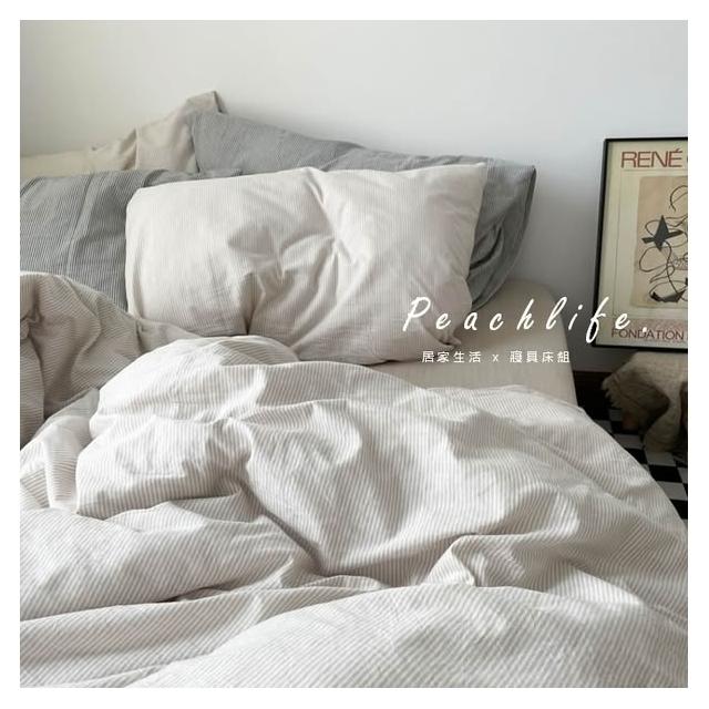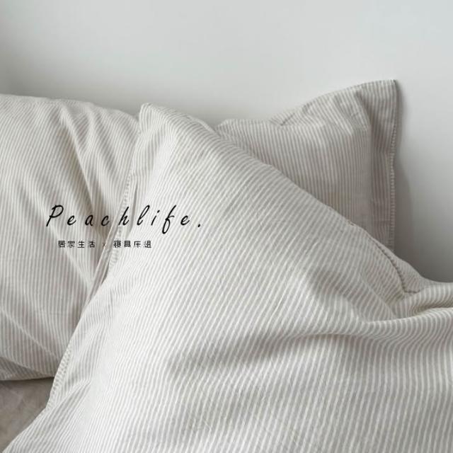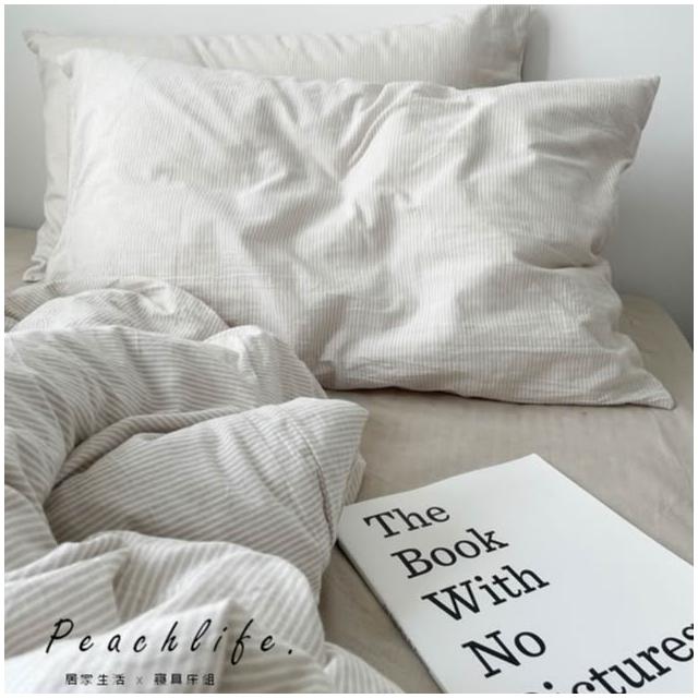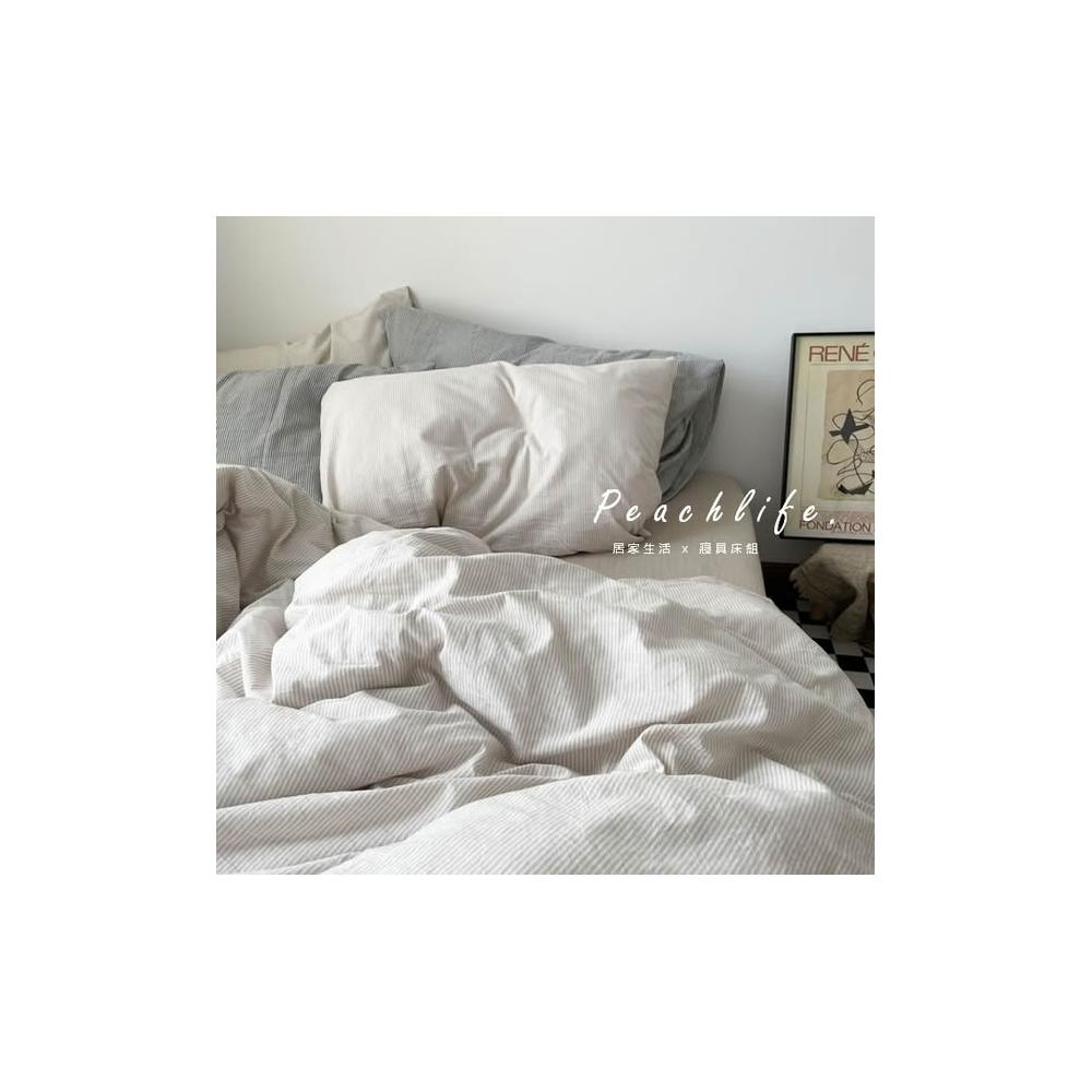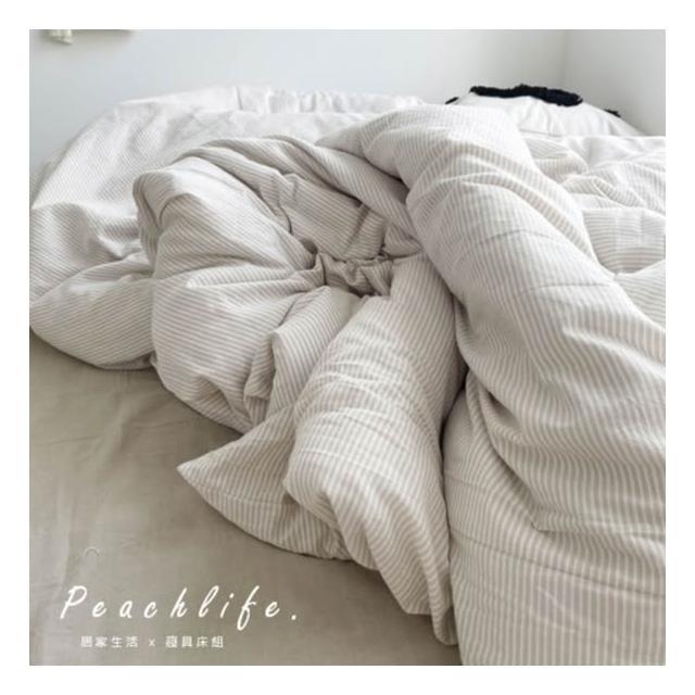 peachlife 細條紋床包組 米色床包 奶油色床包被套枕套 極細條紋 奶油色床包 米條紋 床單被套枕套