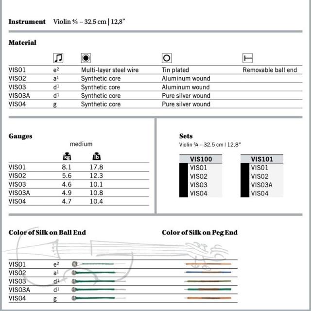 筌曜樂器 全新奧地利 Thomastik VISION SOLO 小提琴套弦 VIS100、VIS101 小提琴弦組