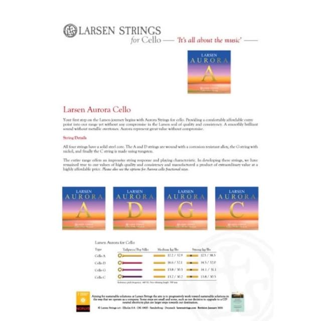 筌曜樂器 全新 丹麥 LARSEN AURORA 大提琴弦 曙光系列 總代理公司貨保證 套裝弦特價