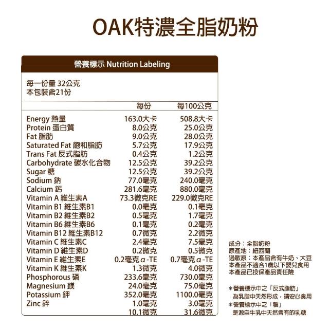 OAK 澳愛開 特濃全脂奶粉 700g/袋