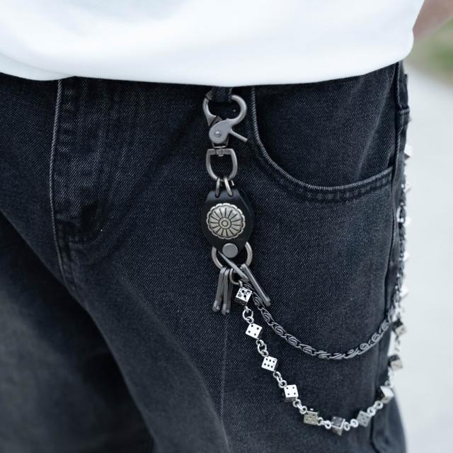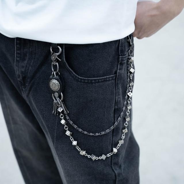 衣衫倉庫 褲鏈 牛仔褲配件 骰子 雕花造型 雙層褲鏈復古 嘻哈 百搭腰鍊