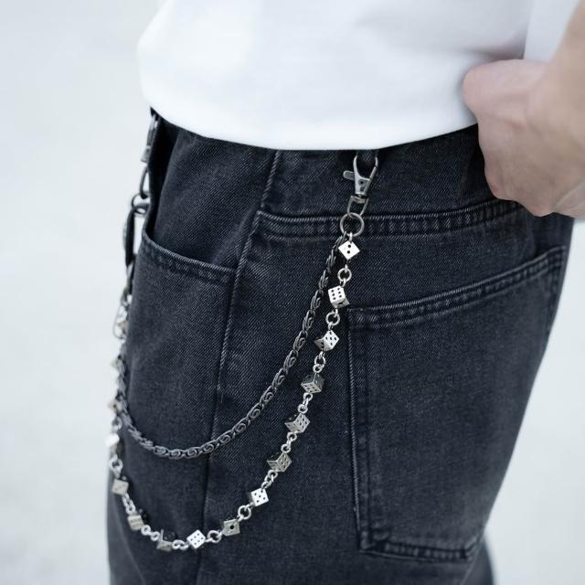 衣衫倉庫 褲鏈 牛仔褲配件 骰子 雕花造型 雙層褲鏈復古 嘻哈 百搭腰鍊