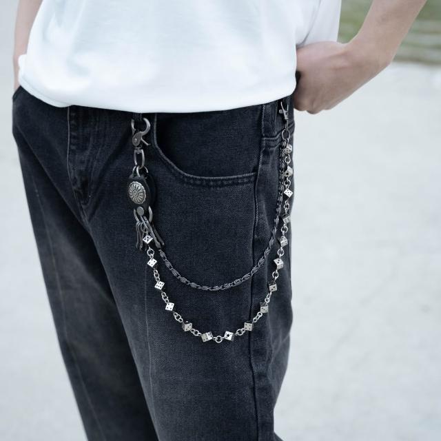 衣衫倉庫 褲鏈 牛仔褲配件 骰子 雕花造型 雙層褲鏈復古 嘻哈 百搭腰鍊